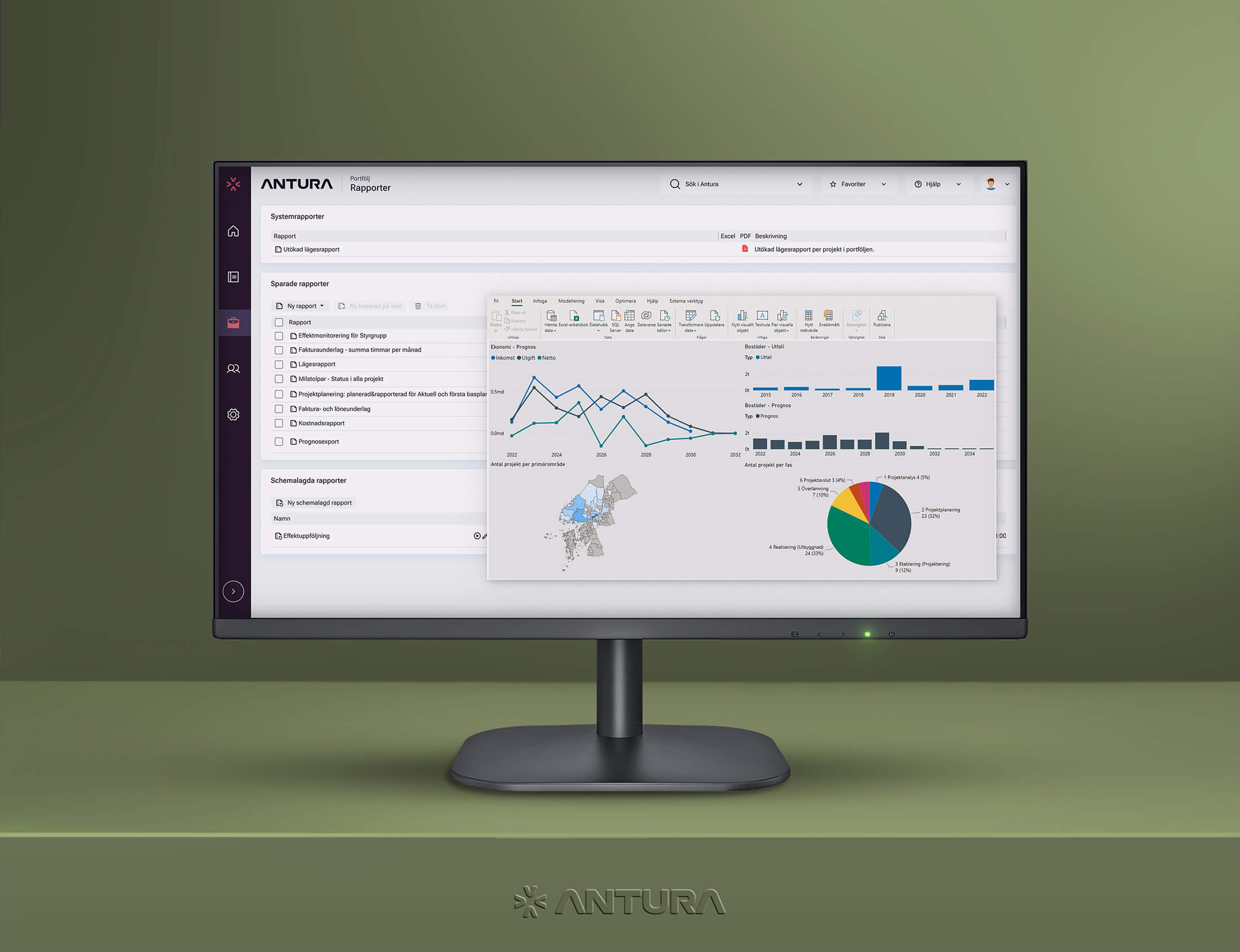 Portföljhantering är nyckeln till att din verksamhet skall kunna besluta om rätt satsningar och få ut maximalt värde av dessa med begränsade resurser. I Antura kan företagsledning, projektkontor och andra intressenter få en helhetsbild över företagets projektverksamhet, samt analysera och styra utvecklingen av projektportföljen.